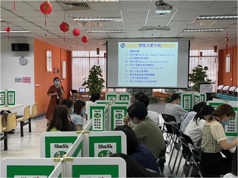 Orientation Training - Sexual harassment prevention, anti-discrimination, anti-harassment, prohibition of forced labor, freedom of Association, health and safe working environment, etc. Safety and health training: safety and health education training, fire safety training, emergency response, first aid personnel training, occupational health and safety training, etc.Social responsibility training courses: social responsibility management training for grass-roots supervisors, social responsibility and work code of conduct training for all employees, education and propaganda from daily behavior and moral standards, providing a healthy and positive workplace culture.
